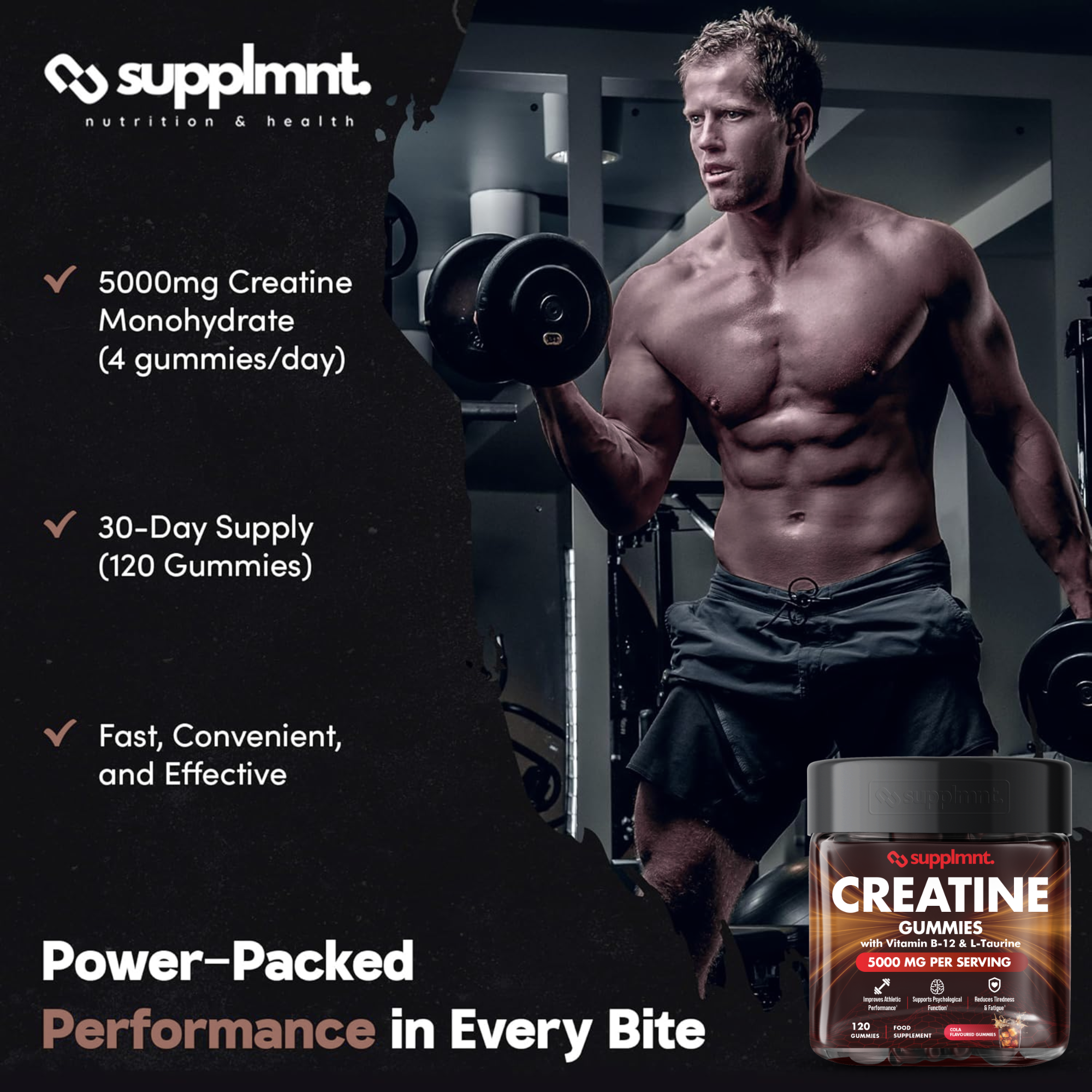 Upgrade your fitness routine with the best Creatine Gummies from Supplmnt. Our Creatine Gummies are delicious, vegan-friendly supplement designed to support muscle growth, strength gains, and athletic performance in and out of the gym.